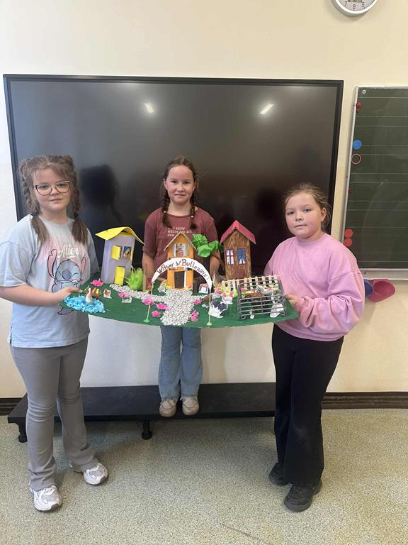 Uczniowie klasy 3a pracowali w grupach nad lekturą „Dzieci z Bullerbyn” autorstwa Astrid Lindgren. Każda grupa przygotowała makietę zagrody z Bullerbyn, przedstawiającą domy, podwórka i miejsca zabaw bohaterów.