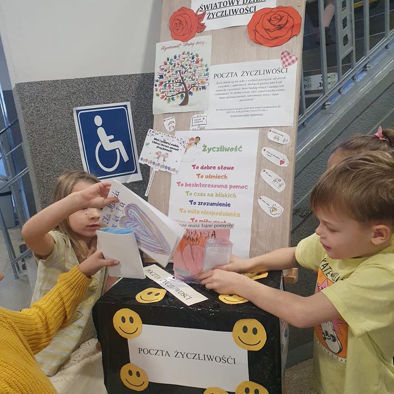Ten dzień upłynął w naszej szkole pod znakiem życzliwości, ciepłych słów i pozytywnych gestów. Z okazji Dnia Życzliwości przygotowana została specjalna skrzynka pocztowa, do której uczniowie mogli wrzucać swoje listy, karteczki i wiadomości skierowane do koleżanek, kolegów, nauczycieli oraz wszystkich osób, którym chcieli przekazać dobre myśli.
