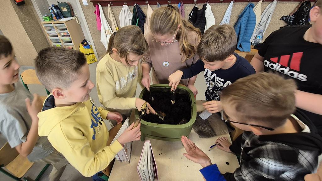 Zajęcia poprowadziła pani Justyna z Ekosfery, w ciekawy i praktyczny sposób pokazując dzieciom, czym jest kompostowanie oraz dlaczego warto je stosować na co dzień. Uczniowie dowiedzieli się:
