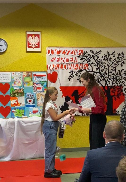 Zofia Matuszak, uczennica klasy III A, znalazła się w gronie wyróżnionych uczestników ogólnopolskiego konkursu plastycznego „Ojczyzna sercem malowana”, organizowanego przez Szkołę Podstawową w Krzycku. Jej praca została dostrzeżona i doceniona na tle ponad siedmiuset zgłoszeń z całej Polski.