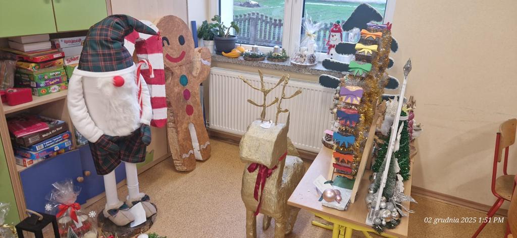 Rozstrzygnięcie konkursu nastąpi podczas Szkolnej Wigilii, a tymczasem przed nami Wielki Kiermasz Świąteczny! Już w czwartek, 4 grudnia, zapraszamy na korytarz przy sali gimnastycznej, gdzie czekać będą stoiska pełne świątecznych dekoracji. Wśród nich znajdą się stroiki, wianki, choinki oraz duże ozdoby, które można ustawić np. przed domem. Wszystkie prace są ręcznie robione i niepowtarzalne - zdjęcia części - poniżej.
