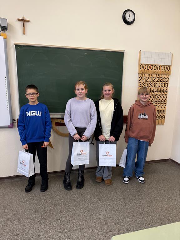 W klasach czwartych lekcje matematyki zamieniły się w rozwiązywanie ciekawych łamigłówek związanych z mnożeniem i dzieleniem. Łącznie w zabawie wzięło udział 141 osób, z czego aż 116 zdobyło certyfikat „Eksperta Tabliczki Mnożenia”. Każdy uczestnik otrzymał także naklejkę oraz słodki upominek