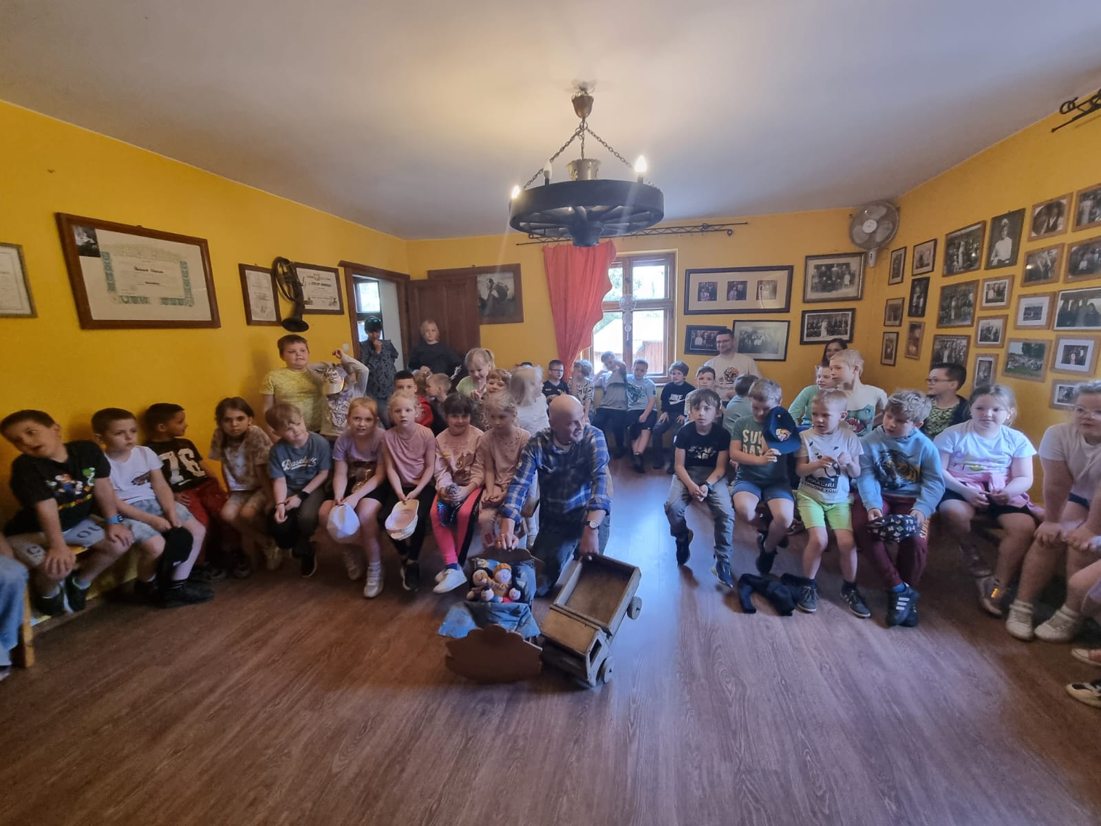 " Stary Kowal" przygotował dla dzieci mnóstwo atrakcji, między innymi: pokaz wykuwania podkowy, przejazd traktorem na przyczepie, pokaz wyrabiania masła. Dzieci spróbowały także pysznych wypieków mamy " Kowala" - słodkich rogalików, a potem bawiły się z wiejskimi zwierzętami na prawdziwym, wiejskim podwórku. Na koniec odbyło się ognisko.