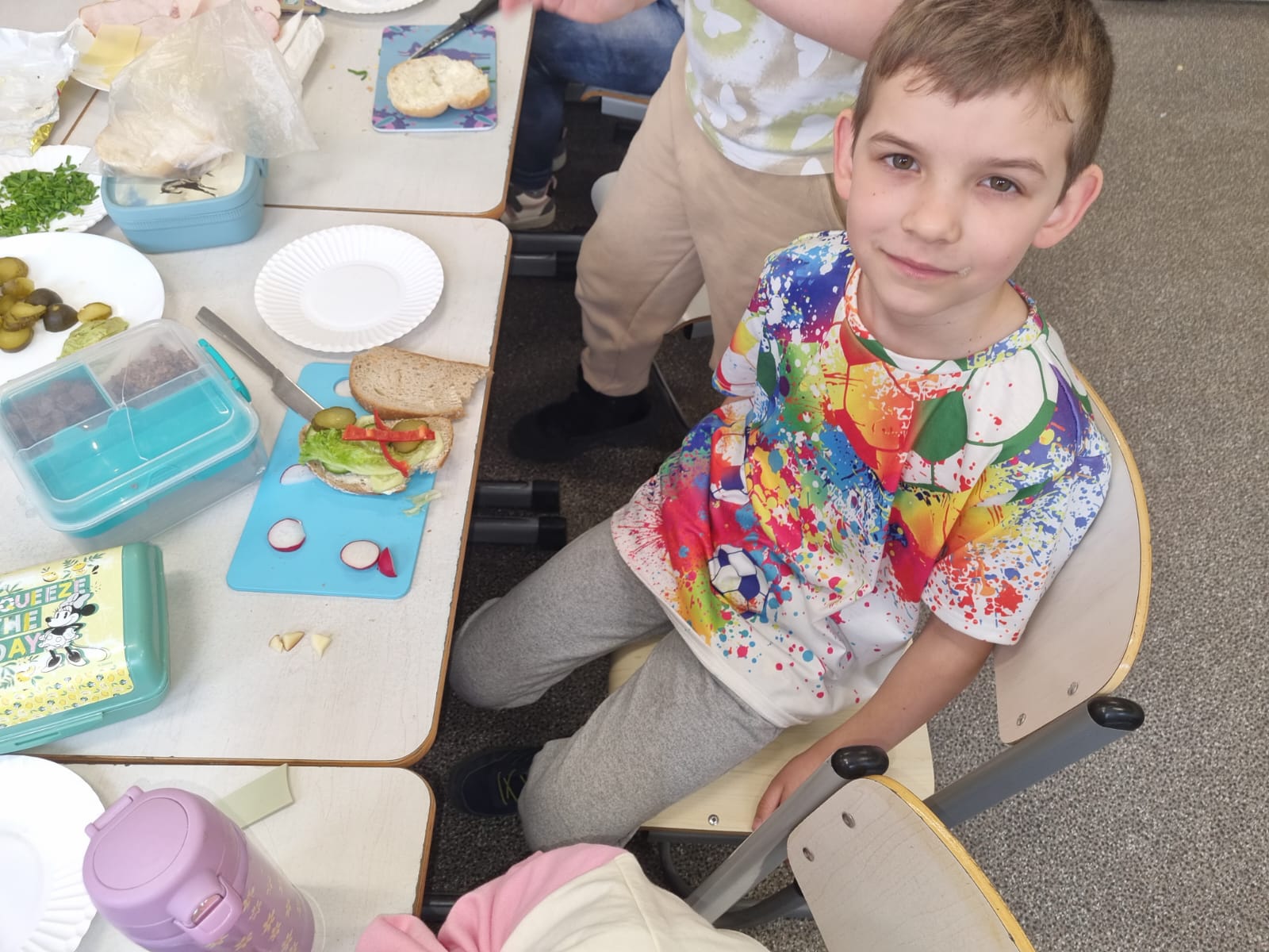 Klasa 1 a bierze udział w ogólnopolskim projekcie " Zdrowo jem, więcej wiem". Głównym celem projektu jest zatem wykształcenie u dzieci postaw prozdrowotnych poprzez uczenie zasad zdrowego odżywiania oraz przekazywanie wiedzy na temat produktów służących zdrowiu i produktów dla zdrowia szkodliwych.