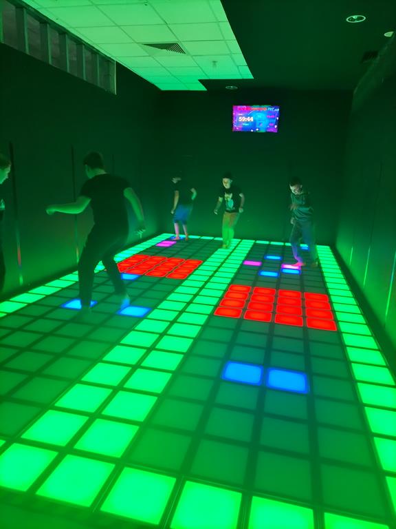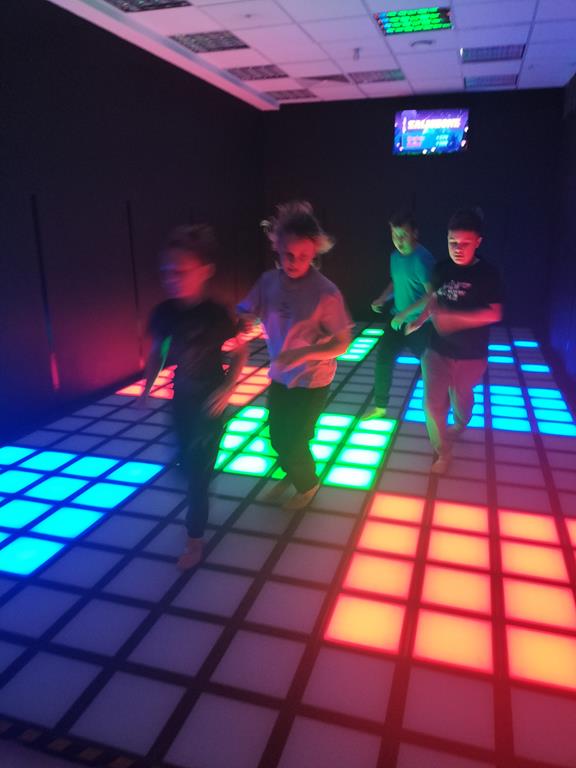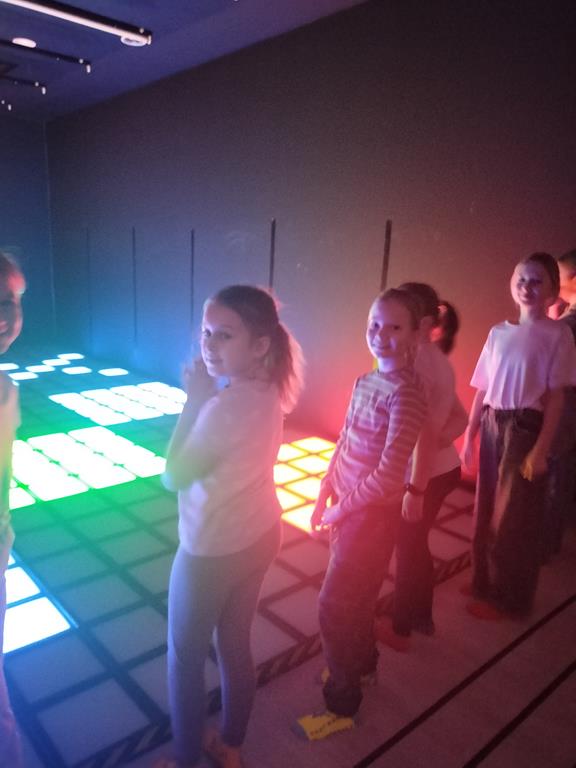 4 grudnia 2024 roku klasa 4b odwiedziła Centrum Pixelmania, miejsce pełne interaktywnych wyzwań. Pixelowa podłoga, która zmieniała się w lawę, okazała się sporą atrakcją! Uczniowie musieli wykazać się spostrzegawczością, zwinnością i umiejętnością współpracy, unikając czerwonych pól i zbierając niebieskie oraz fioletowe kwadraty, by zdobyć kolejne poziomy. Zielone pola były bezpieczną przystanią, chroniącą przed utratą „życia”.