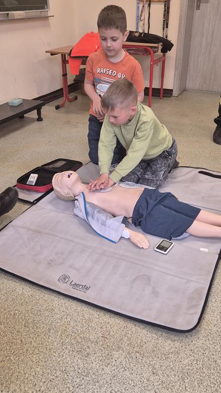 Dzieci miały okazję nauczyć się podstaw udzielania pierwszej pomocy – ćwiczyły m.in. resuscytację krążeniowo-oddechową (RKO) oraz układanie poszkodowanego w pozycji bezpiecznej. To była niezwykle pouczająca i emocjonująca lekcja!