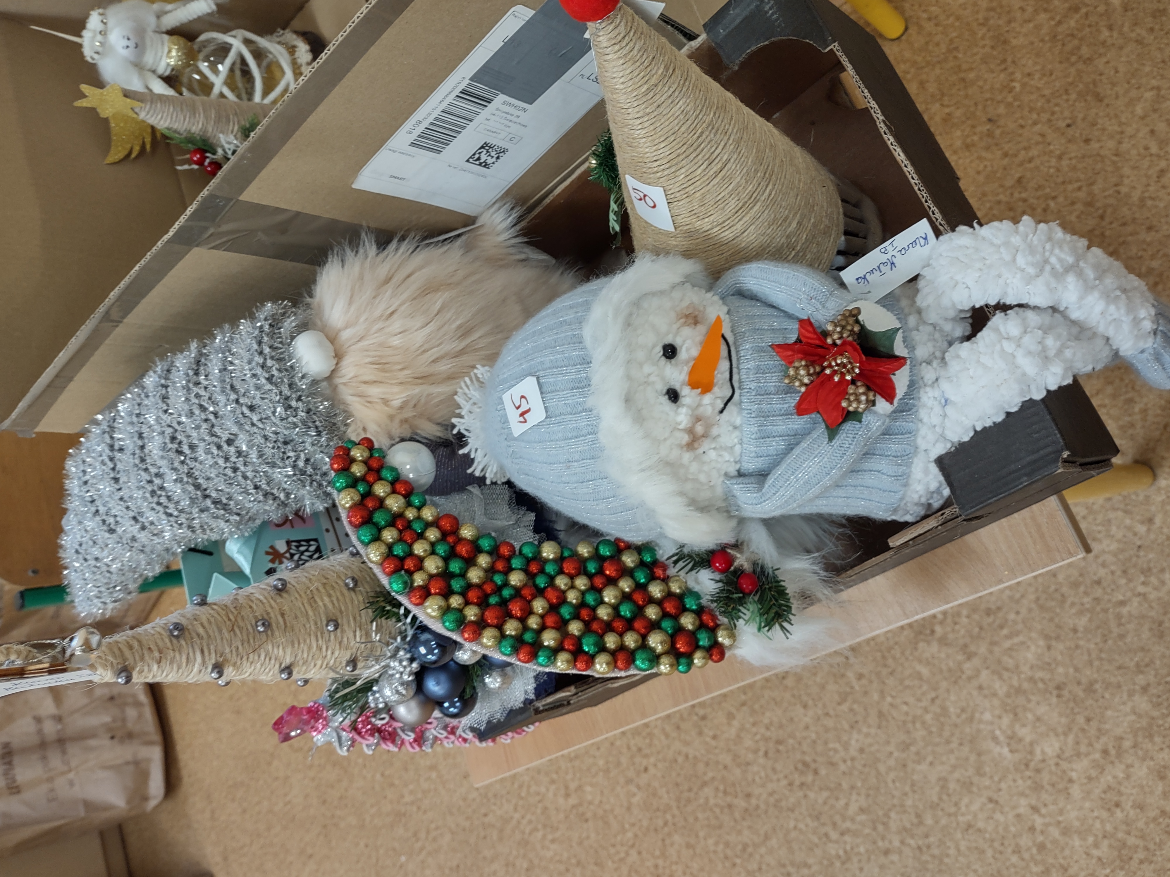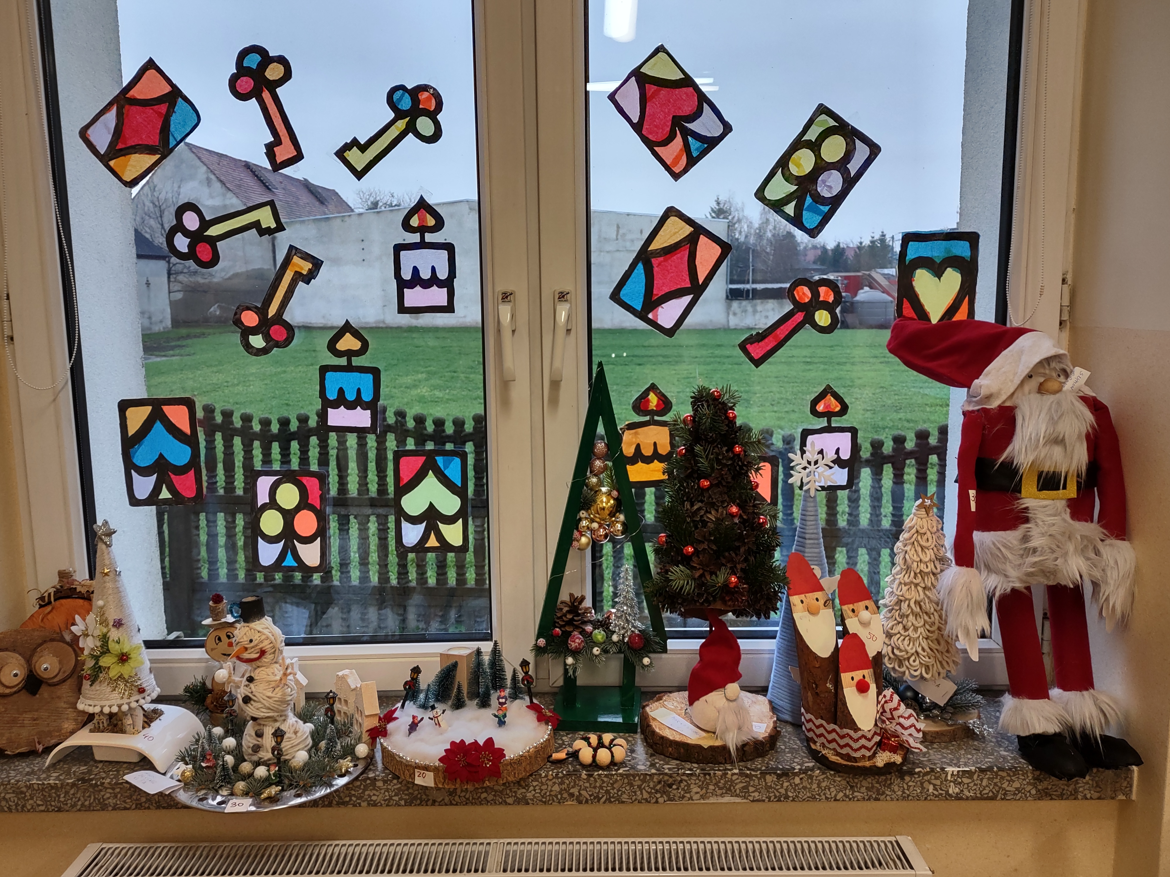 Na kupno czekają stroiki, świeczniki, krasnale, figurki dziadków do orzechów, choinki, bombki i wiele, wiele innych przepięknych ozdób. Stoiska będą czynne na każdej przerwie od 8.30 do 12.30. Dodatkowo, w czasie dużej przerwy, czyli od 12.10 do 12.30 zapraszamy w dniach 6, 9, 10, 11 grudnia wszystkich chętnych rodziców, którzy chcieliby zakupić świąteczne dekoracje (prosimy o wejście drzwiami od szkolnego dziedzińca i kierowanie się pod salę gimnastyczną). Poniżej prezentujemy zdjęcia niektórych ozdób, jakie znajdą się od 6 grudnia w sprzedaży. Wszystkie dekoracje zostały wykonane przez dzieci i rodziców na Rodzinny Konkurs Świąteczny.
