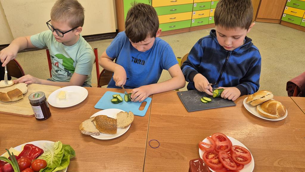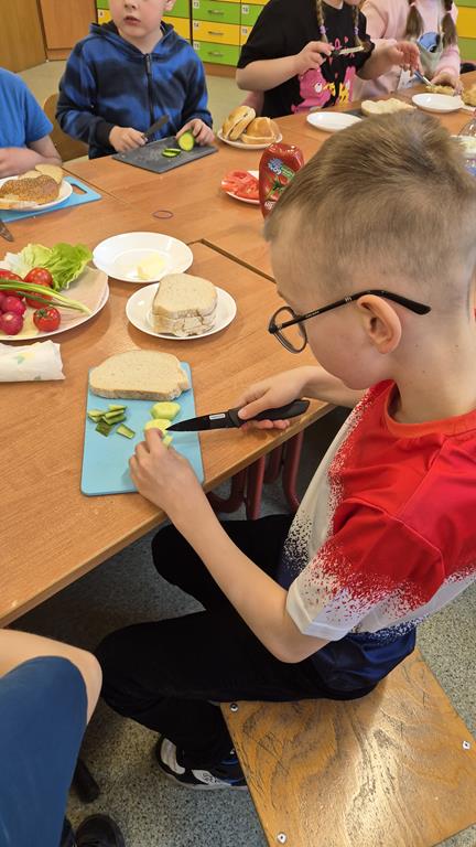 Podczas zajęć uczniowie uczyli się, jak odpowiednio przygotować warzywa do spożycia oraz jak dbać o higienę podczas przygotowywania posiłków. Mycie rąk, staranne krojenie składników i utrzymanie czystości w miejscu pracy to umiejętności, które będą im towarzyszyć na co dzień. Dzięki temu doświadczeniu dzieci mogły nie tylko rozwijać swoje kulinarne zdolności, ale także lepiej zrozumieć, jak ważne jest zdrowe odżywianie.