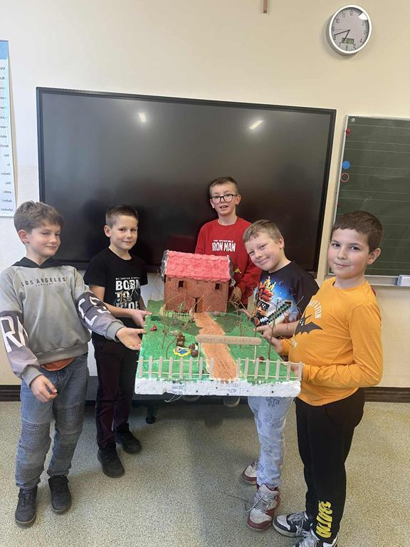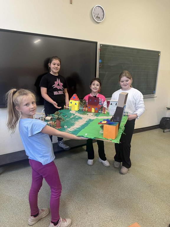 Uczniowie klasy 3a pracowali w grupach nad lekturą „Dzieci z Bullerbyn” autorstwa Astrid Lindgren. Każda grupa przygotowała makietę zagrody z Bullerbyn, przedstawiającą domy, podwórka i miejsca zabaw bohaterów.