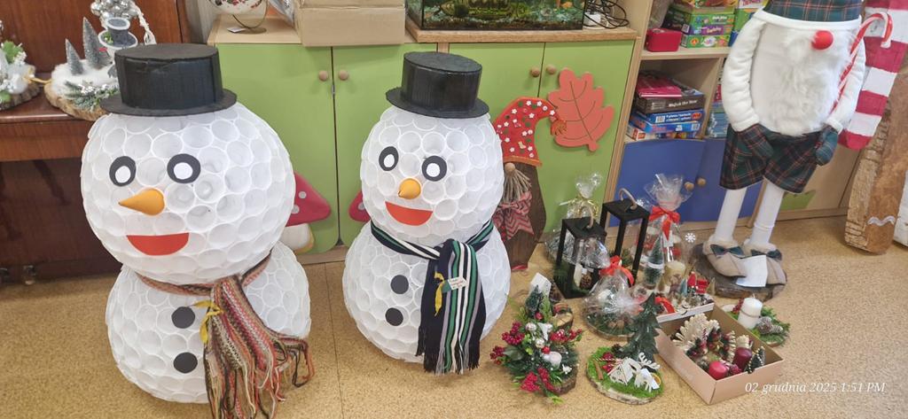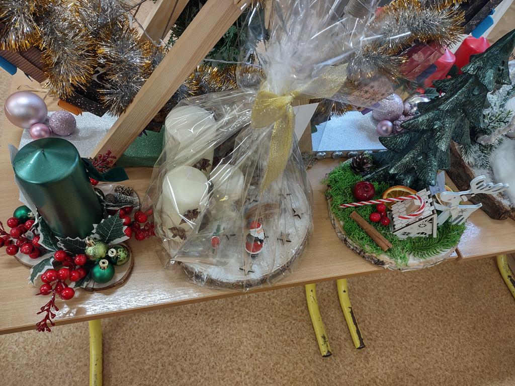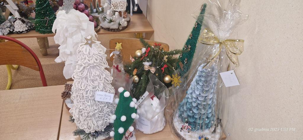 Rozstrzygnięcie konkursu nastąpi podczas Szkolnej Wigilii, a tymczasem przed nami Wielki Kiermasz Świąteczny! Już w czwartek, 4 grudnia, zapraszamy na korytarz przy sali gimnastycznej, gdzie czekać będą stoiska pełne świątecznych dekoracji. Wśród nich znajdą się stroiki, wianki, choinki oraz duże ozdoby, które można ustawić np. przed domem. Wszystkie prace są ręcznie robione i niepowtarzalne - zdjęcia części - poniżej.
