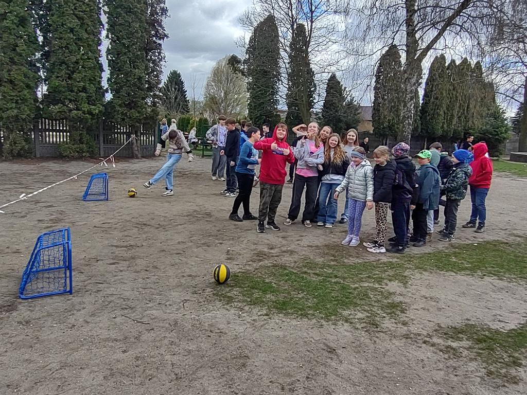- podczas przerw – aktywności sportowe na boisku szkolnym pod hasłem „Zamiast tortu trochę sportu”.