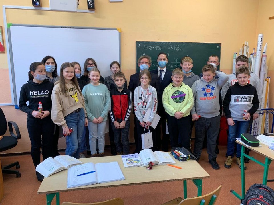 We wtorek, 7 grudnia, senator Wojciech Ziemniak zjawił się w naszej szkole, aby wręczyć upominki dwóm uczennicom klasy szóstej - Mai Masztalerz za wyróżnienie oraz Gabrieli Sobkowiak za udział w konkursie ,,List do taty”. Konkurs organizowany jest co dwa lata przez Komisję Rodziny, Polityki Senioralnej i Społecznej we współpracy z Fundacją Cyryla i Metodego – Inicjatywa Tato.