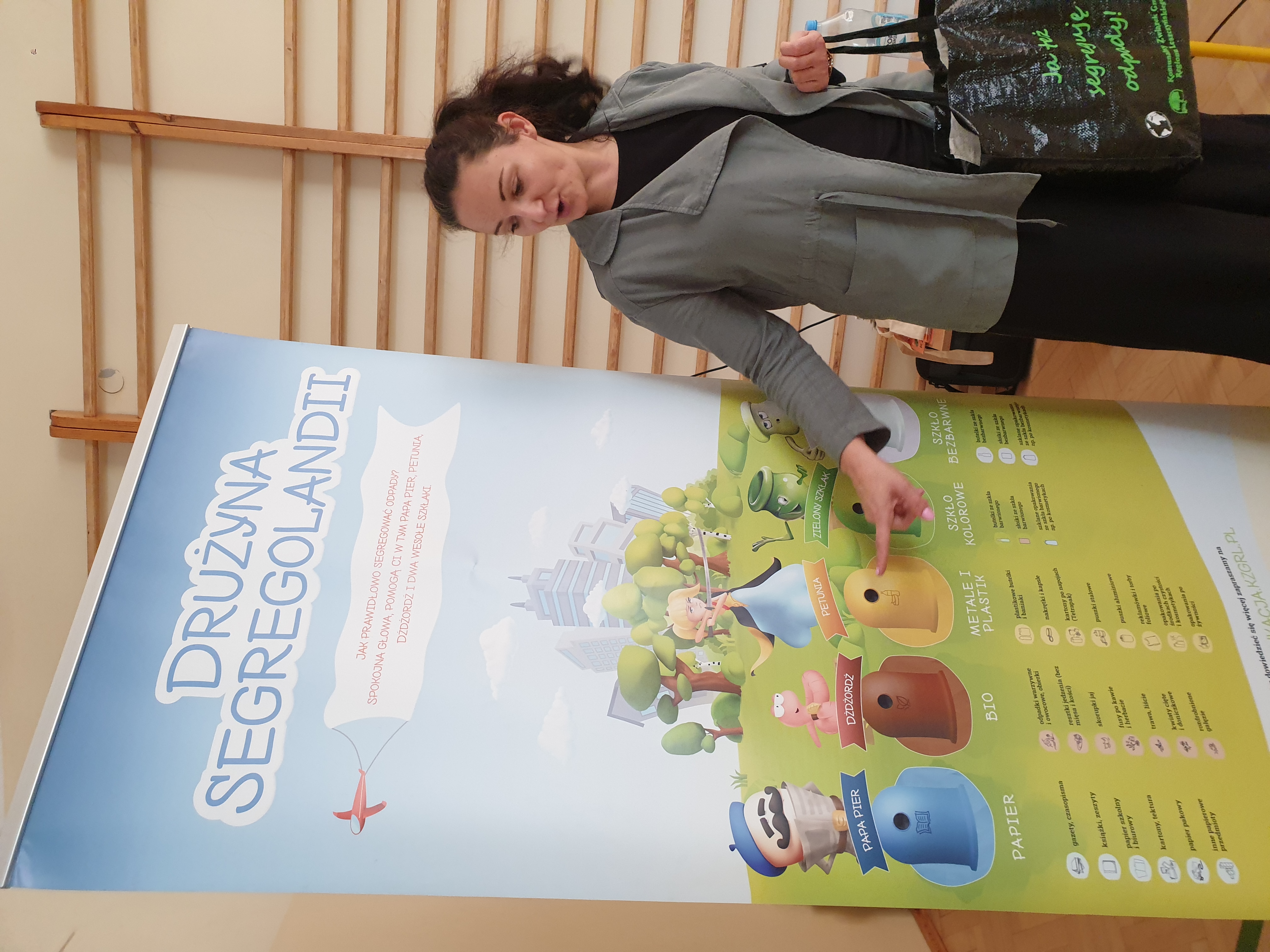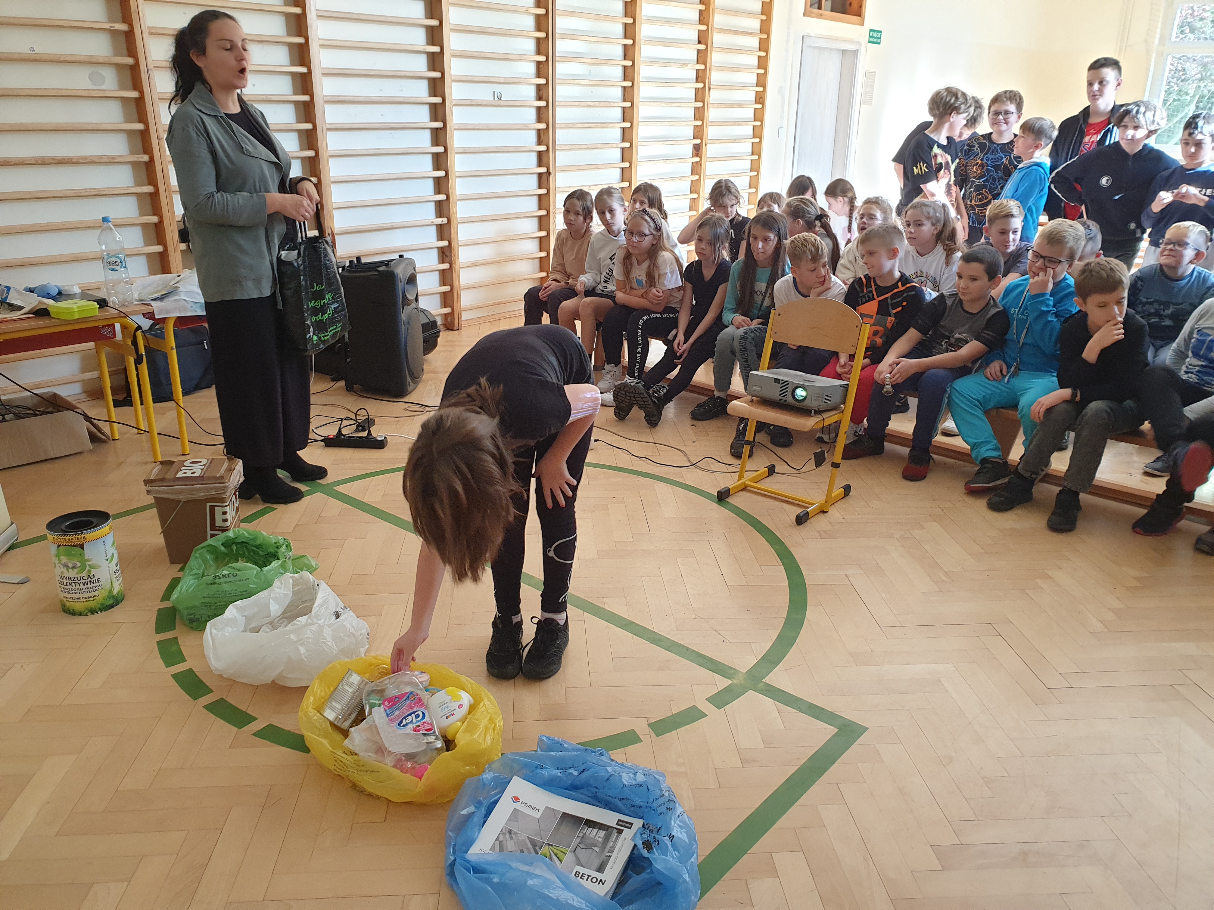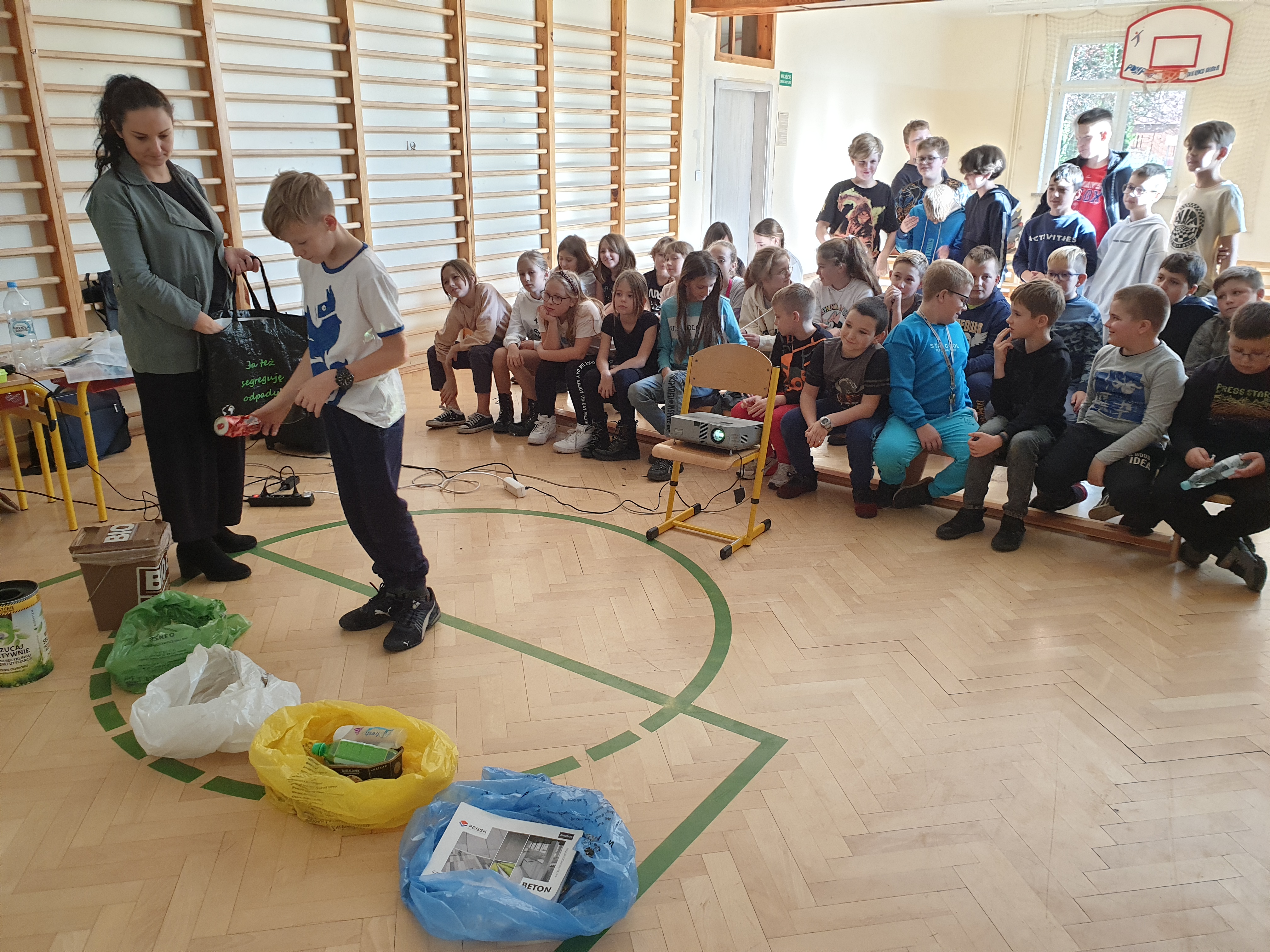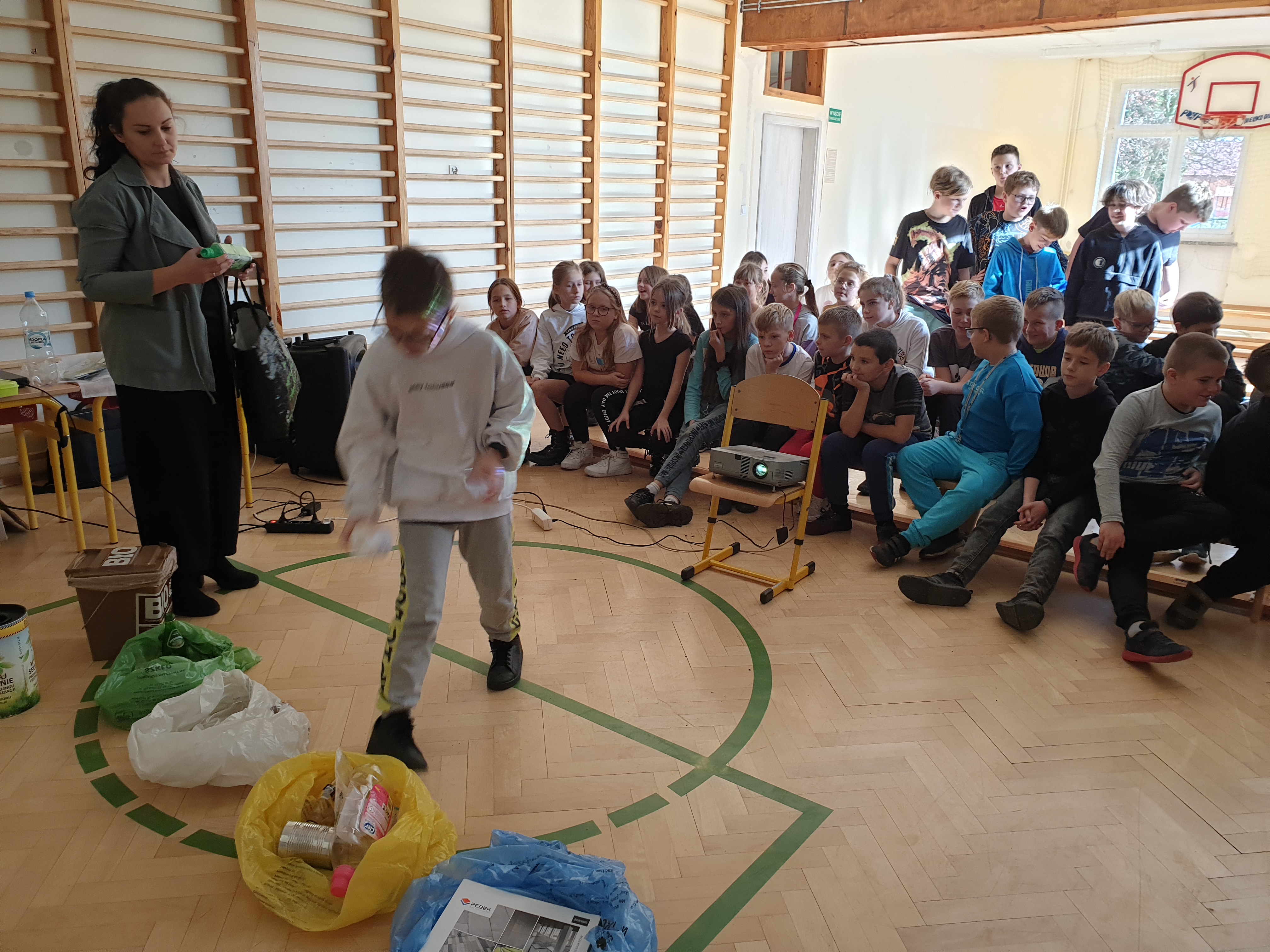 Uczniowie klas czwartych wzięli udział w spotkaniu z przedstawicielem Komunalnego Związku Gmin Regionu Leszczyńskiego. Głównym celem wydarzenia było zwiększenie świadomości dzieci dotyczącej konieczności segregowania odpadów. Uczniowie zobaczyli również, jak wygląda zakład, do którego trafiają śmieci z ich domów i co się z nimi dzieje po tym, gdy trafią do kubła.