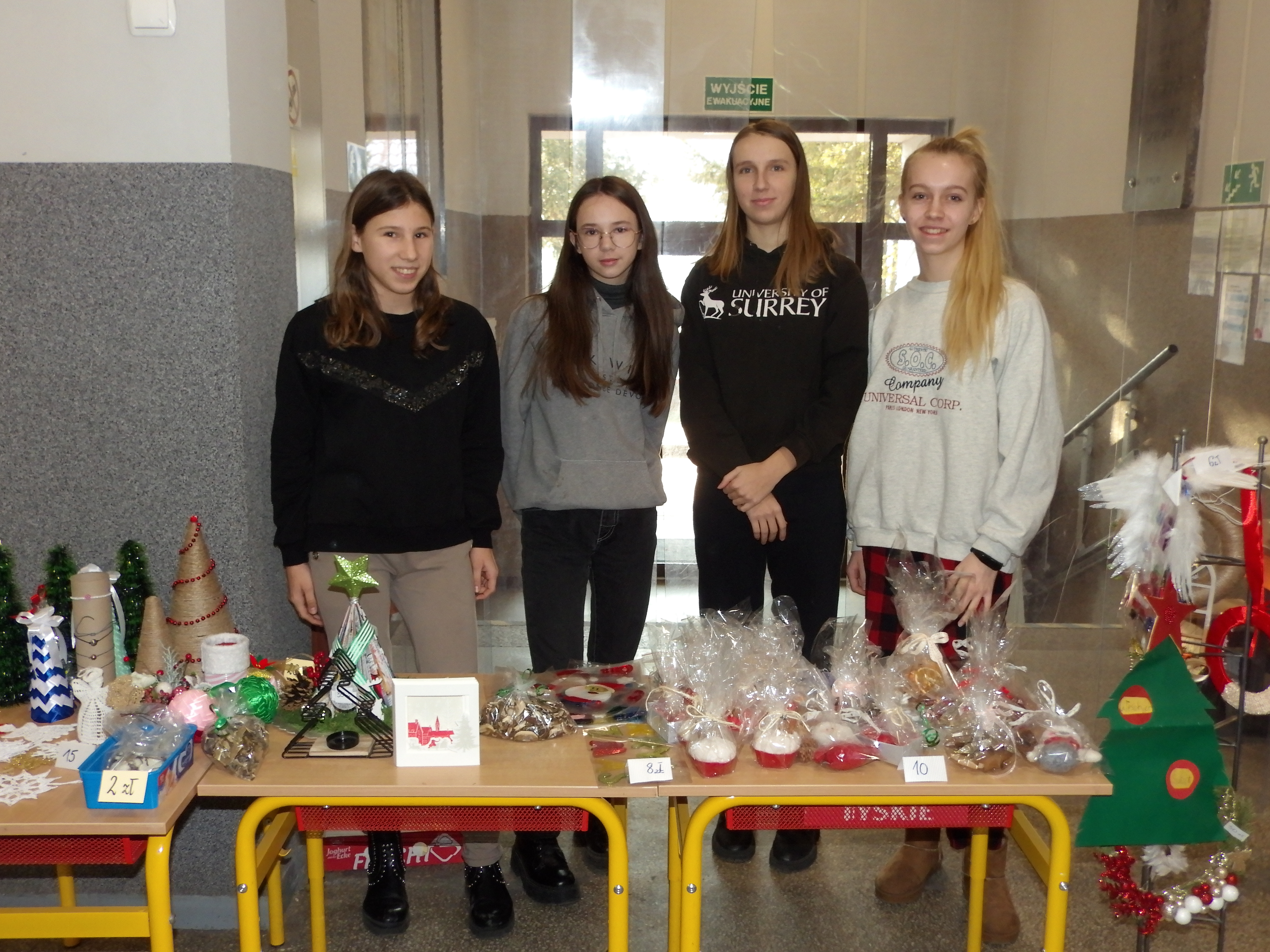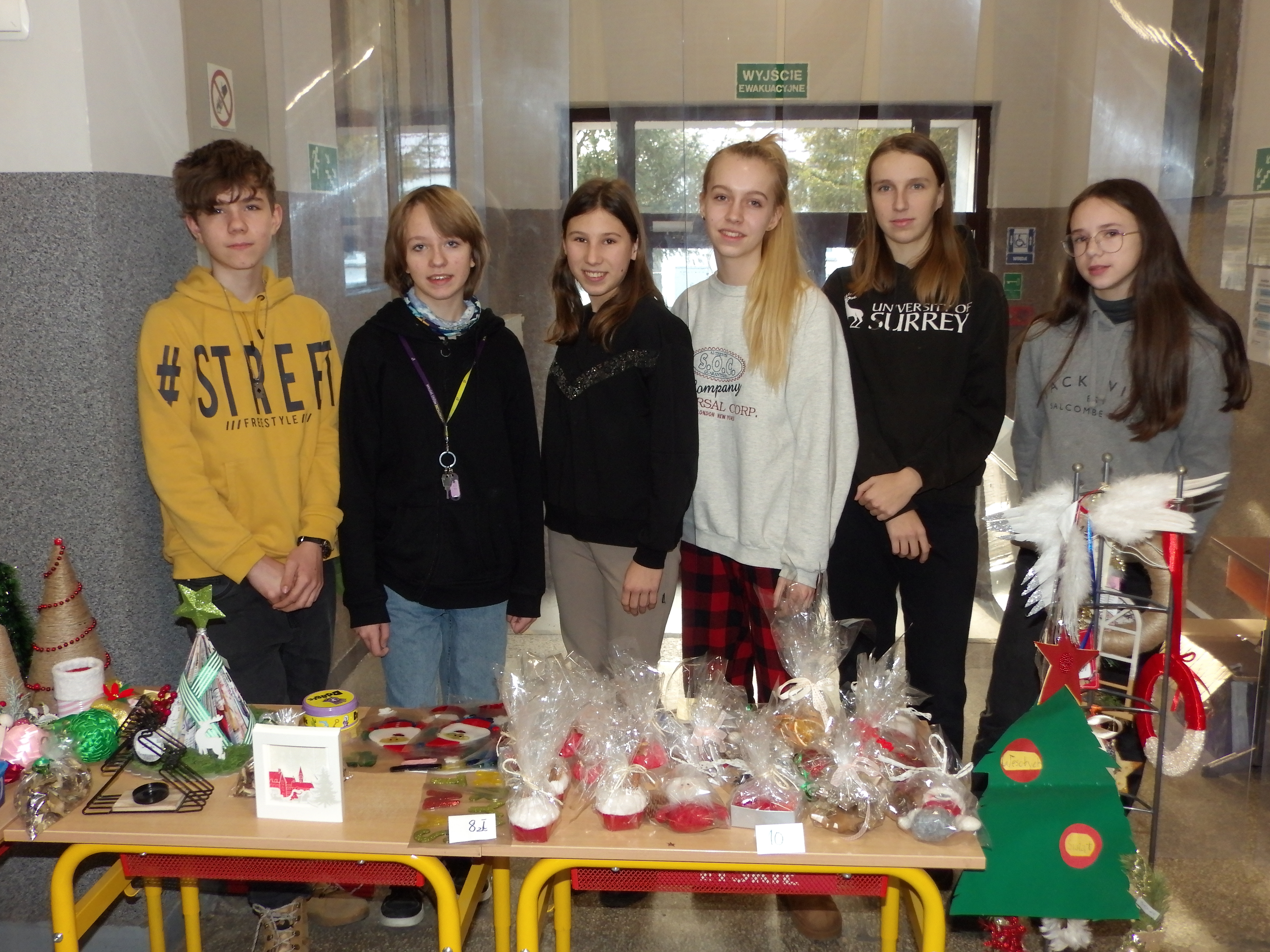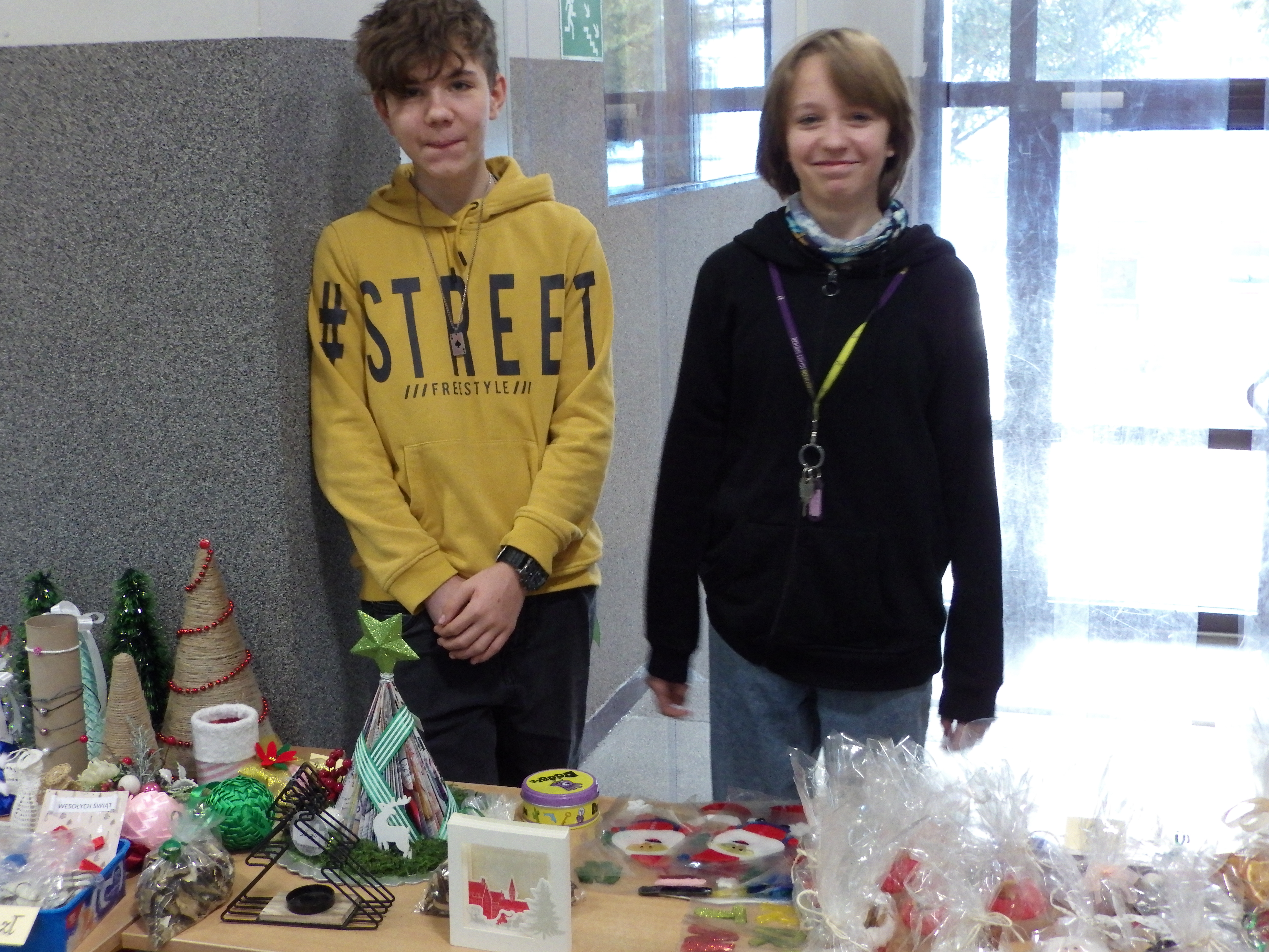 Od 6 grudnia, do samej niemal przerwy świątecznej, trwał w naszej szkole kiermasz charytatywny. Można było kupić ręcznie robione bombki, stroiki, szydełkowe gwiazdki, aniołki, a nawet świeczniki, biżuterię, bożonarodzeniowe wianki, suszone grzyby, czy kartki świąteczne. Na przerwach, przy pokoju nauczycielskim, dzielni sprzedawcy z klasy 8c zachęcali do kupna ozdób.