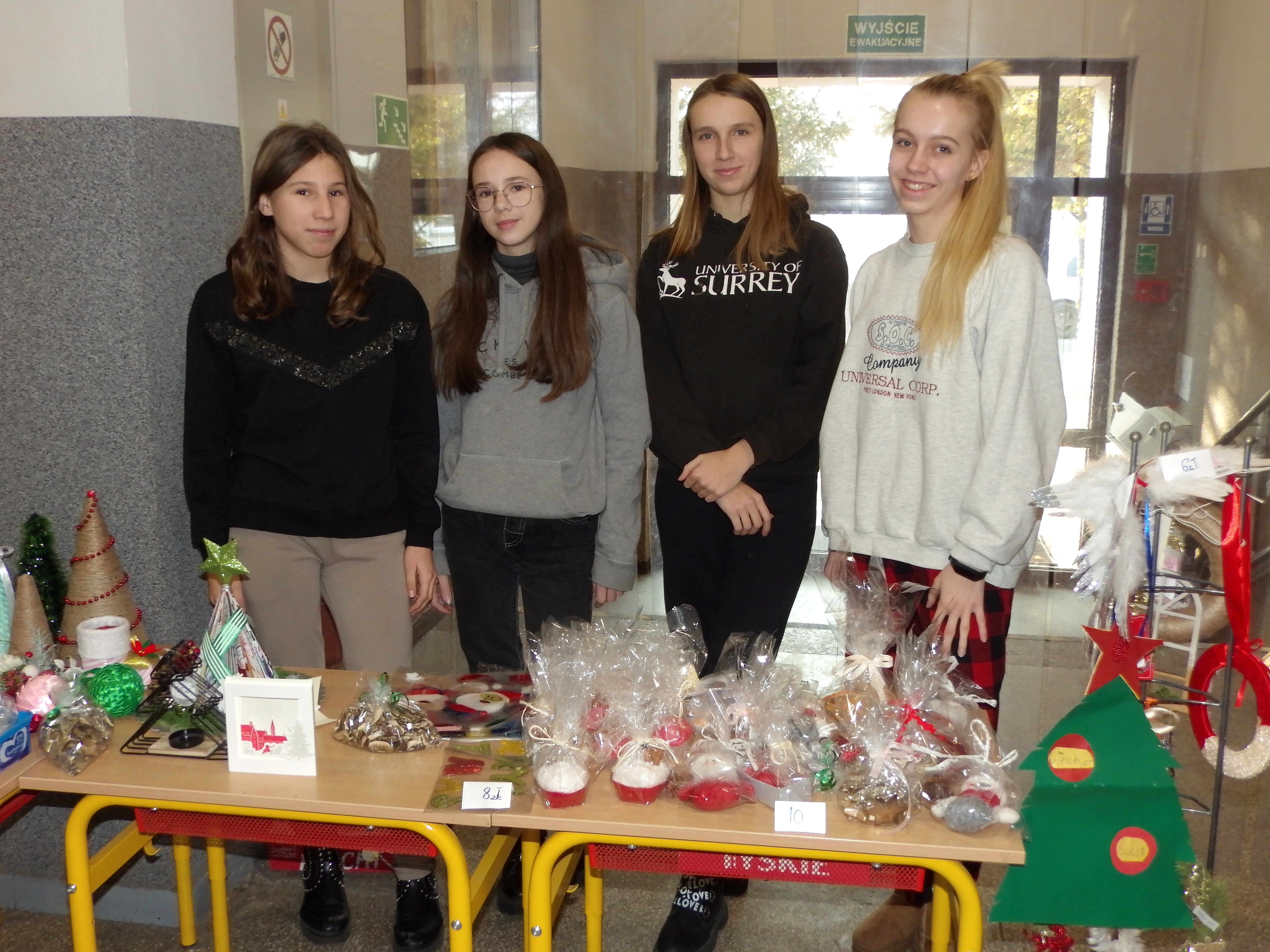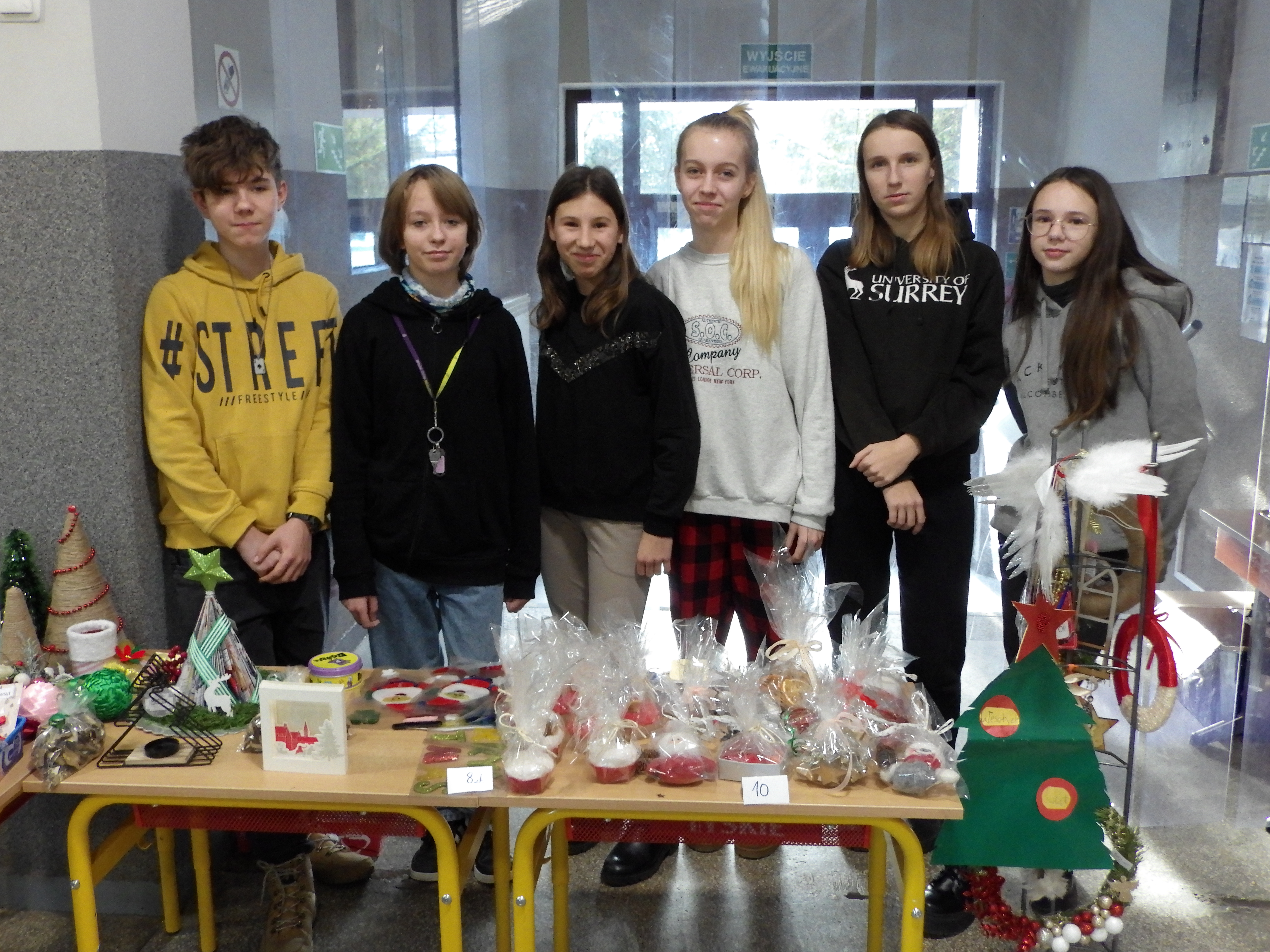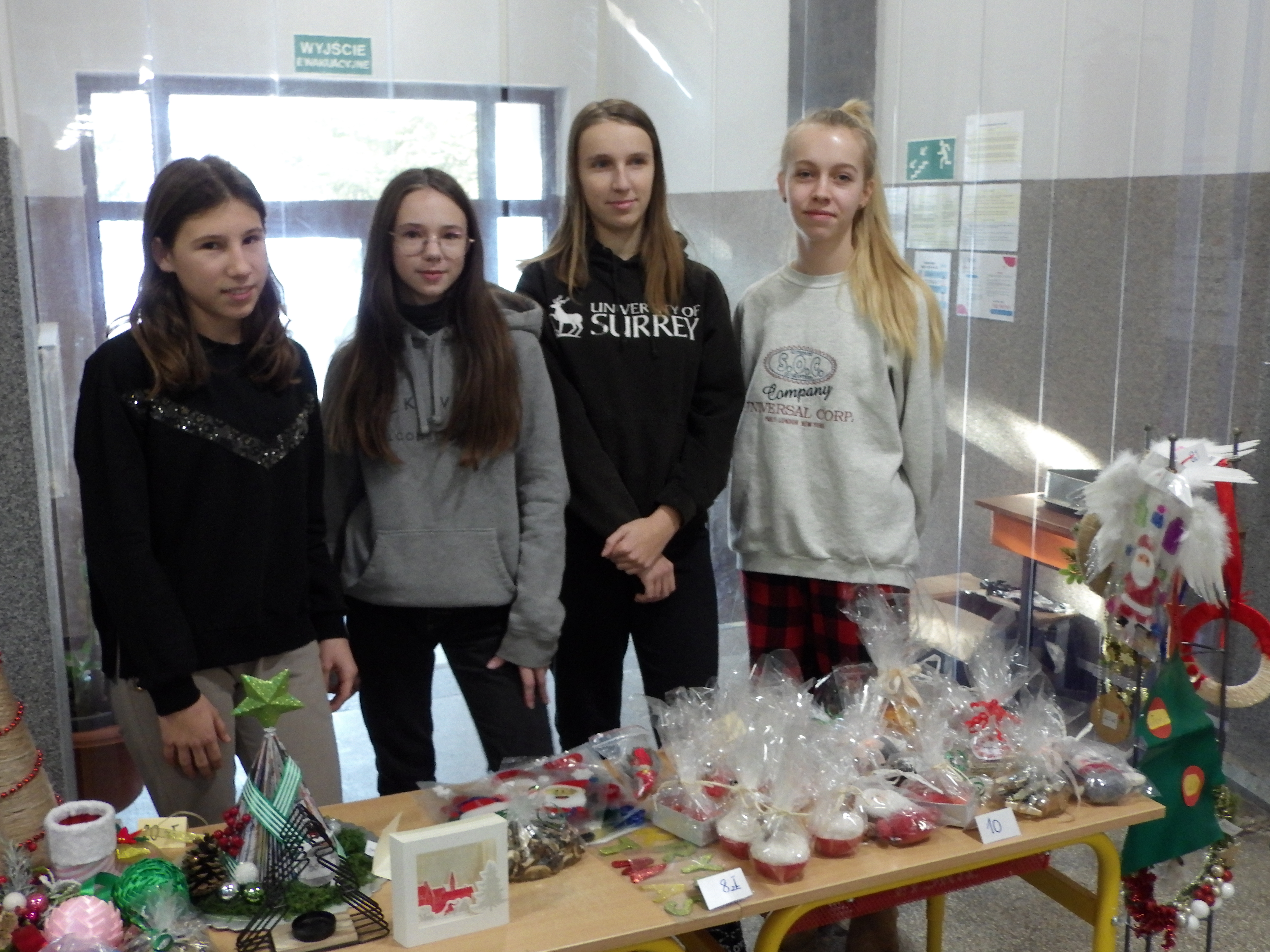 Od 6 grudnia, do samej niemal przerwy świątecznej, trwał w naszej szkole kiermasz charytatywny. Można było kupić ręcznie robione bombki, stroiki, szydełkowe gwiazdki, aniołki, a nawet świeczniki, biżuterię, bożonarodzeniowe wianki, suszone grzyby, czy kartki świąteczne. Na przerwach, przy pokoju nauczycielskim, dzielni sprzedawcy z klasy 8c zachęcali do kupna ozdób.