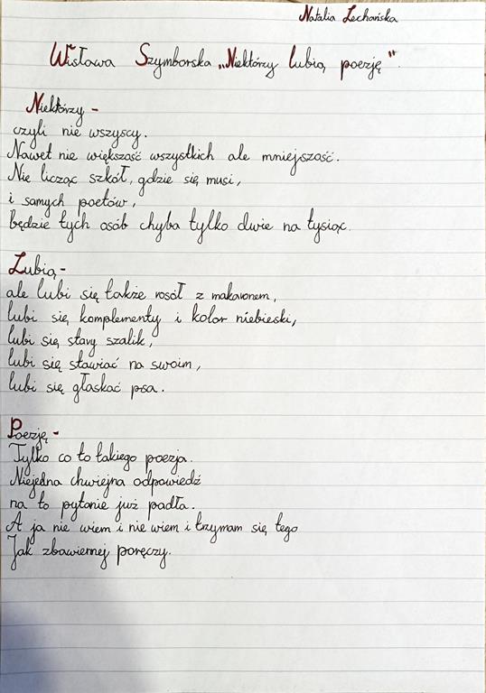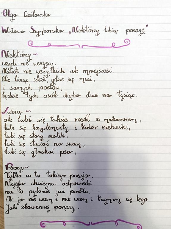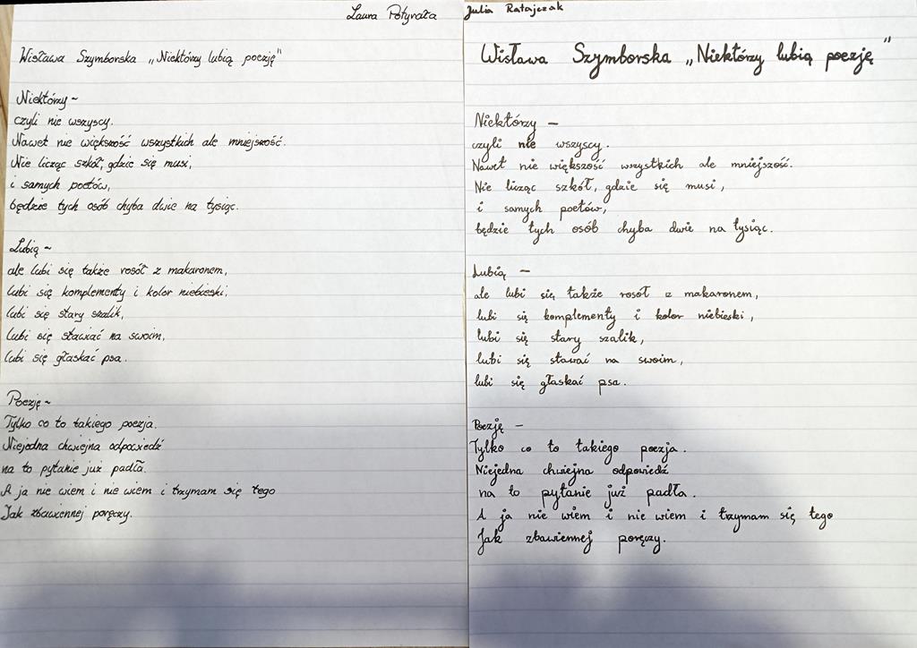 Zadaniem uczniów było przepisanie tekstu literackiego. W związku z tym, że rok 2023 przez Sejm Rzeczypospolitej Polskiej został ustanowiony Rokiem Wisławy Szymborskiej były to utwory tej polskiej noblistki.