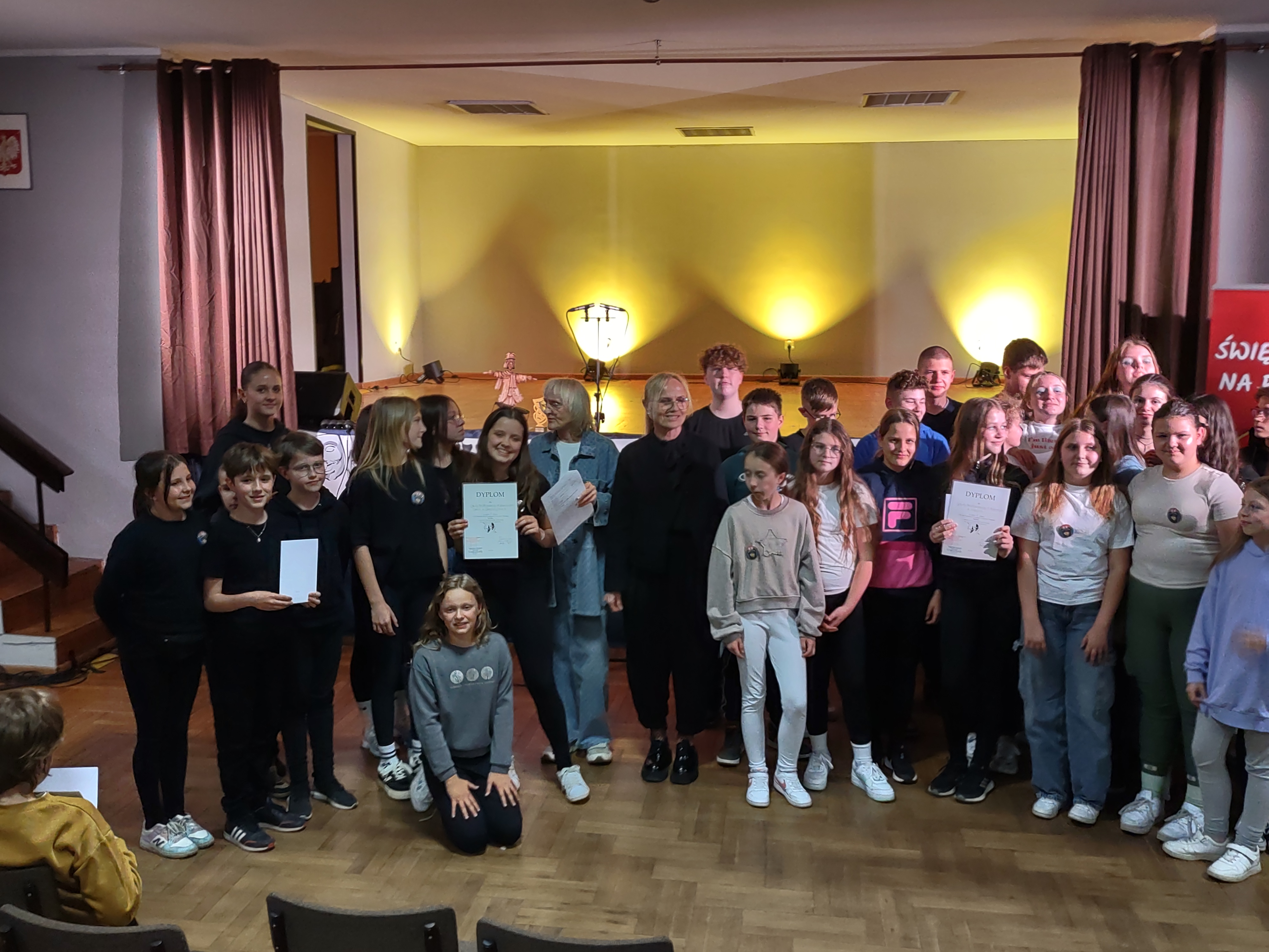 W drugim dniu Święta Teatru na Prowincji nasza starsza grupa "Powsinoga", idąc w ślady młodszych kolegów, również wywalczyła II miejsce w XX Ogólnopolskim Przeglądzie Twórczości Teatralnej Maska 2024, ale w kategorii klas IV - VI.