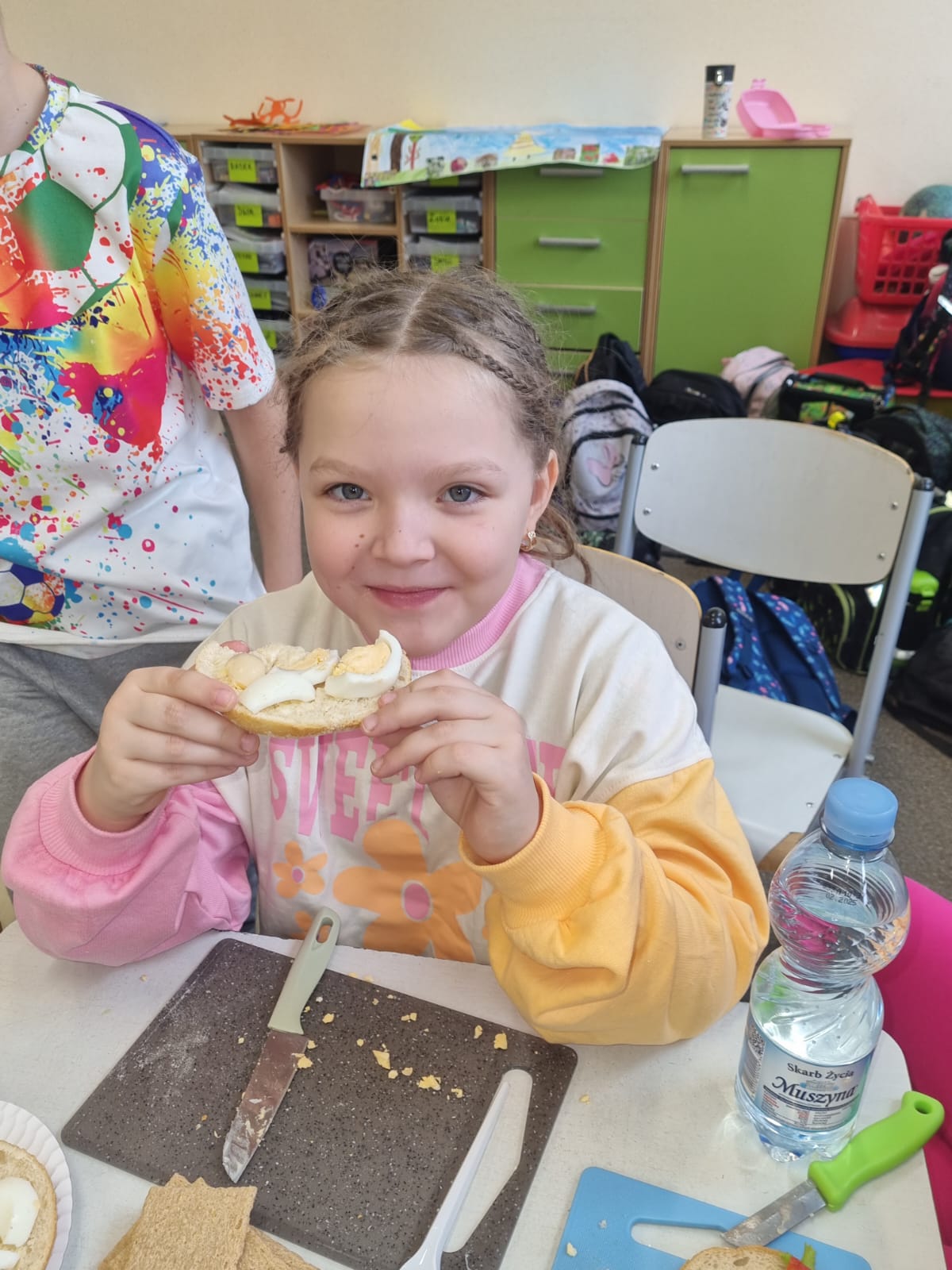 Klasa 1 a bierze udział w ogólnopolskim projekcie " Zdrowo jem, więcej wiem". Głównym celem projektu jest zatem wykształcenie u dzieci postaw prozdrowotnych poprzez uczenie zasad zdrowego odżywiania oraz przekazywanie wiedzy na temat produktów służących zdrowiu i produktów dla zdrowia szkodliwych.