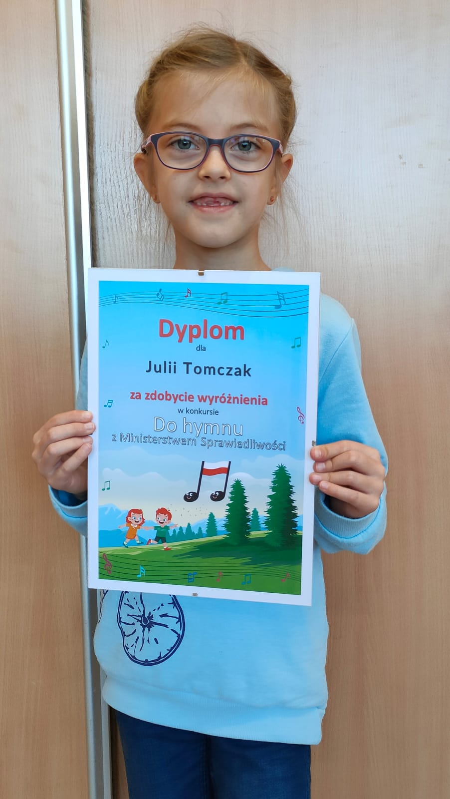 Na początku listopada uczniowie naszej szkoły wzięli udział w konkursie: „Do hymnu z Ministerstwem Sprawiedliwości”. Organizatorzy otrzymali ponad 380 zgłoszeń od utalentowanych dzieci z przedszkoli, zerówek oraz klas I-III szkół podstawowych z całej Polski. Z dumą informujemy, że uczennica klasy 2a - Julia Tomczak wyśpiewała wyróżnienie w tym prestiżowym konkursie. Gratulujemy!