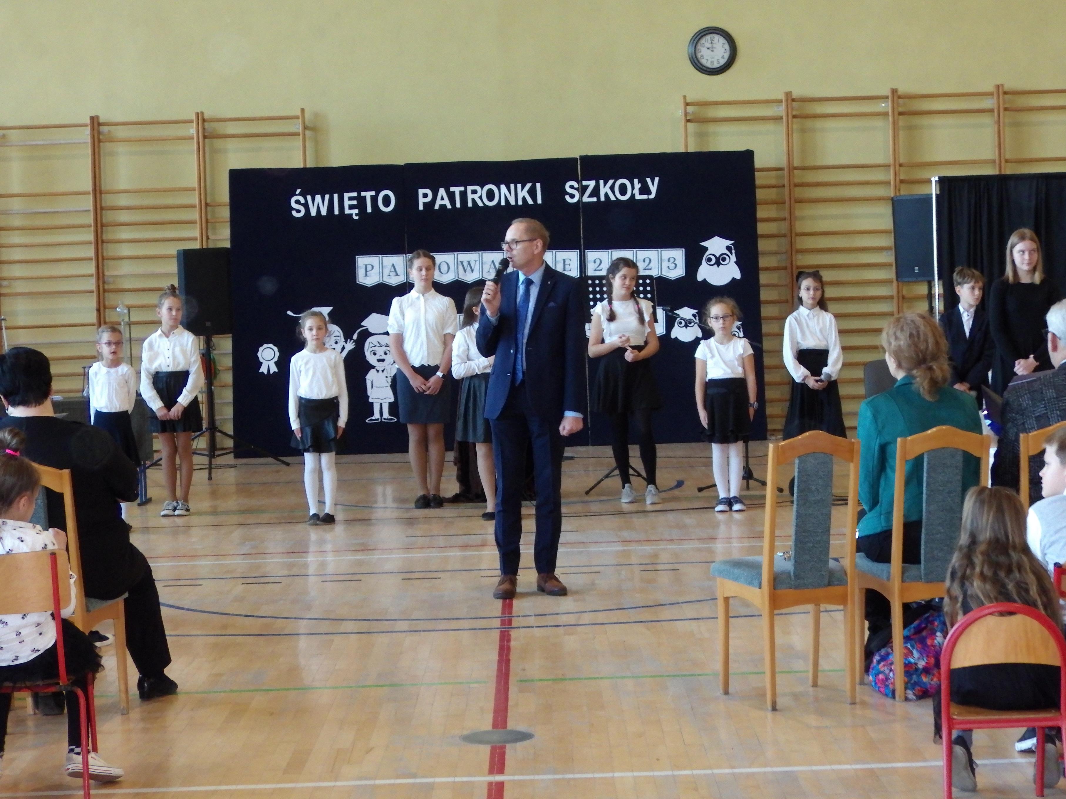Uroczystość została otwarta przez Dyrektora Szkoły - pana Mirosława Grzelczyka. Przybliżył on sylwetkę tej dwukrotnej laureatki Nagrody Nobla.