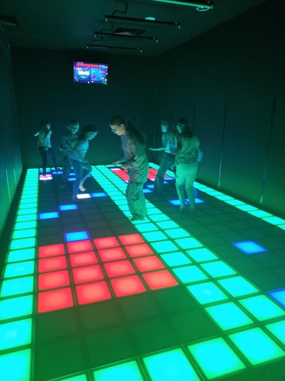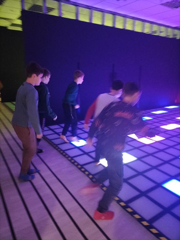 4 grudnia 2024 roku klasa 4b odwiedziła Centrum Pixelmania, miejsce pełne interaktywnych wyzwań. Pixelowa podłoga, która zmieniała się w lawę, okazała się sporą atrakcją! Uczniowie musieli wykazać się spostrzegawczością, zwinnością i umiejętnością współpracy, unikając czerwonych pól i zbierając niebieskie oraz fioletowe kwadraty, by zdobyć kolejne poziomy. Zielone pola były bezpieczną przystanią, chroniącą przed utratą „życia”.
