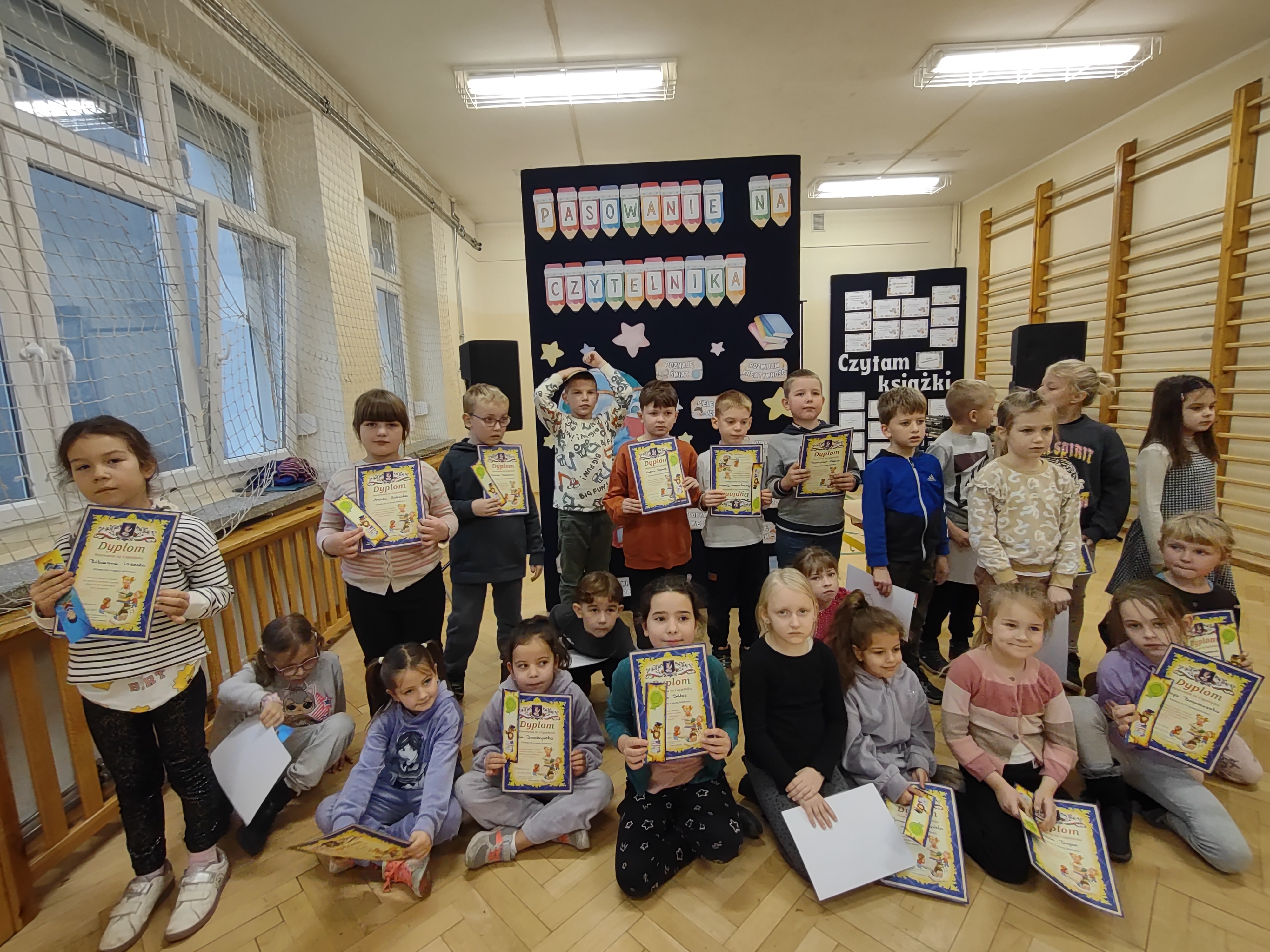 Uczniowie klas pierwszych znów ślubowali - tym razem, że będą wzorowymi czytelnikami szkolnej biblioteki. Uroczystość miała miejsce 26 listopada. W "małej" sali gimnastycznej maluchów powitali członkowie szkolnego kółka teatralnego "Ło jery" i zaprosili do obejrzenia inscenizacji o Kopciuszku, który gościł na swoich urodzinach różnych bohaterów bajeczek.